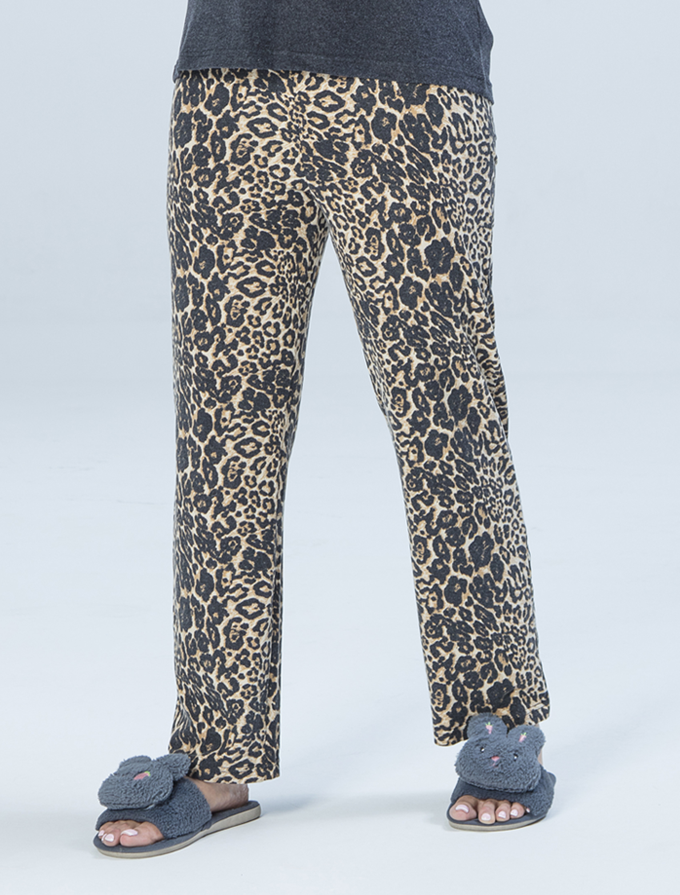 ست زنانه بلوز ذغالی و شلوار ملانژ پلنگی